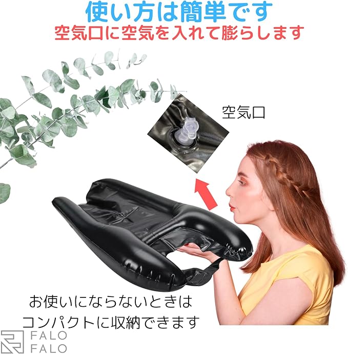 【エアーハット】空気を入れてお使いいただきます。柔らかく膨らんだハットが頭や首をやさしく支えます。
