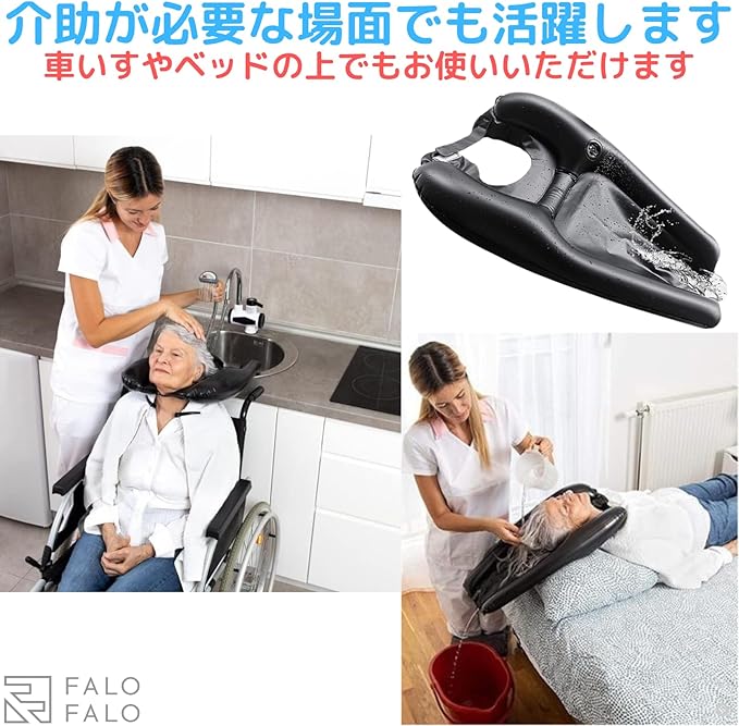 【どこでもできます】お風呂はもちろん、洗面台やベッドサイドなどで洗髪が可能です。車いす等の介助が必要な場合にもご使用いただけます。