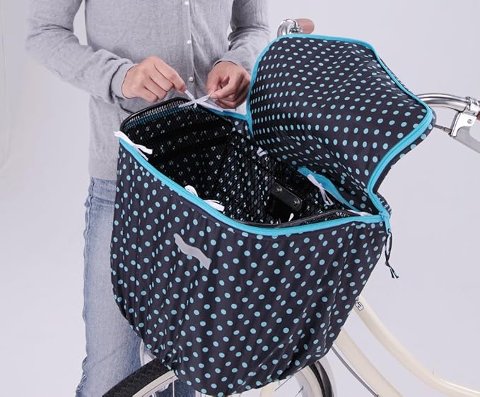 【2段式 水玉前カゴカバー ポケット付き】