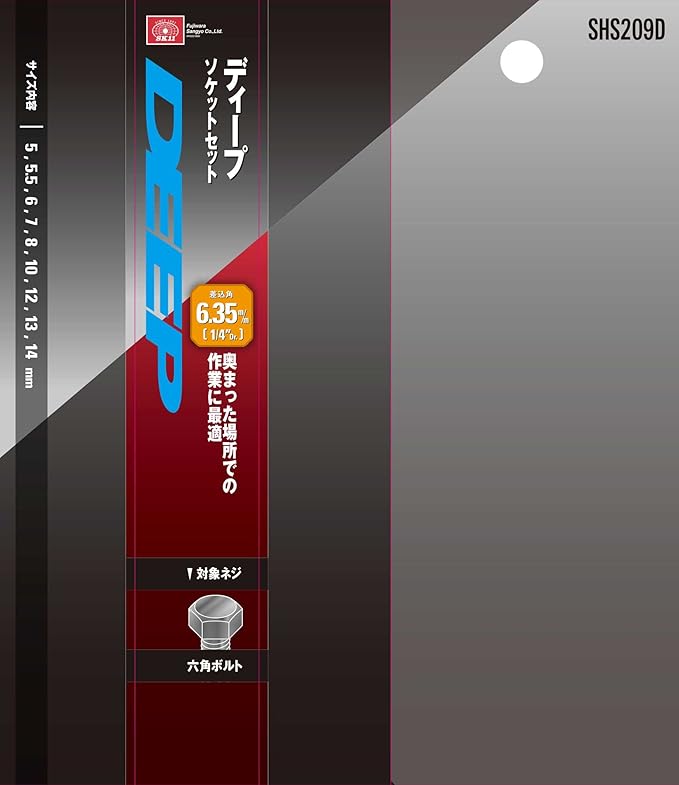 特徴:差込角6.35mmミリサイズ対応、ディープソケット9個組セット