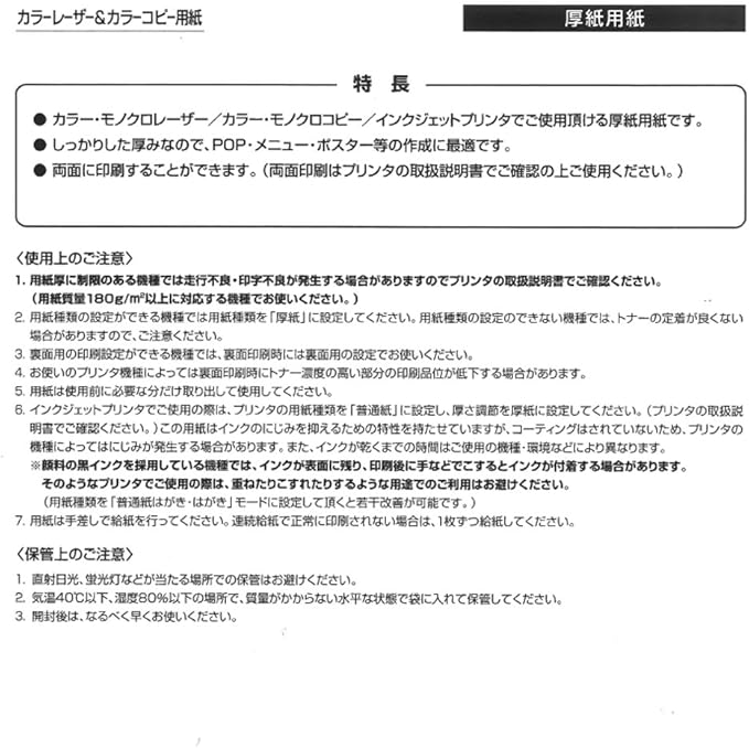 <B>製品概要:</B>カラーレーザー&カラーコピー用紙厚紙用紙