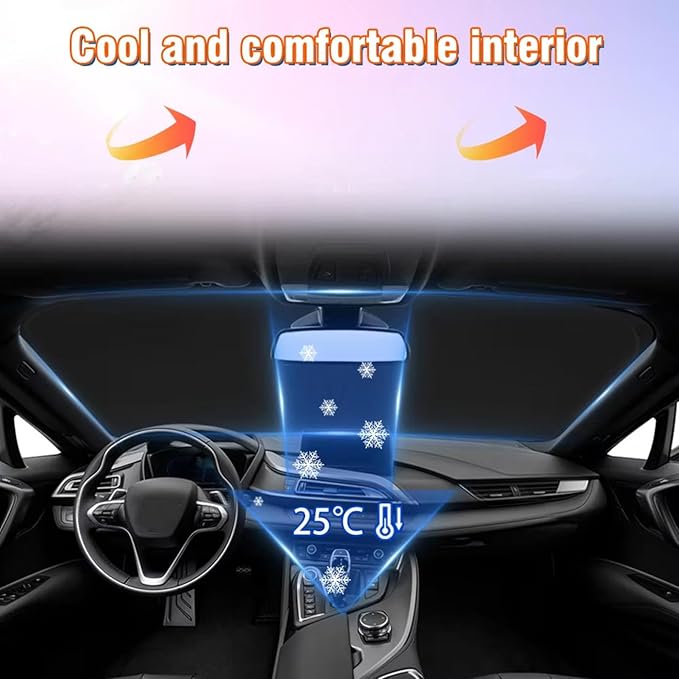 【完璧な断熱材】: 車のフロントガラス用サンシェードは、暑い夏の日に車内をより涼しく快適に体験できます。 当社の車用フロントガラスサンシェードは、日光を遮断するだけでなく、熱を大幅に減らし、毎回さわやかなスタートを切ることができます。