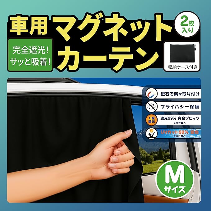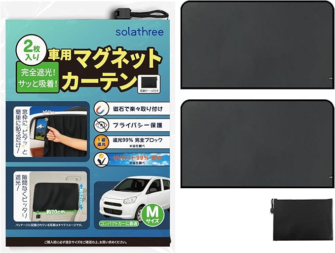 車用マグネットカーテン 2枚セット 収納ケース付き 遮光99% UVカット 日除け プライバシー保護 車中泊 仮眠 簡単取付 強力. .貼付 折りたたみ式 ノリ跡残らず 曲面窓対応 遮光生地 車内カーテン 災害 日よけ 直射日光 紫外線対策 プライバシー サンシェード (M) | oioioichan