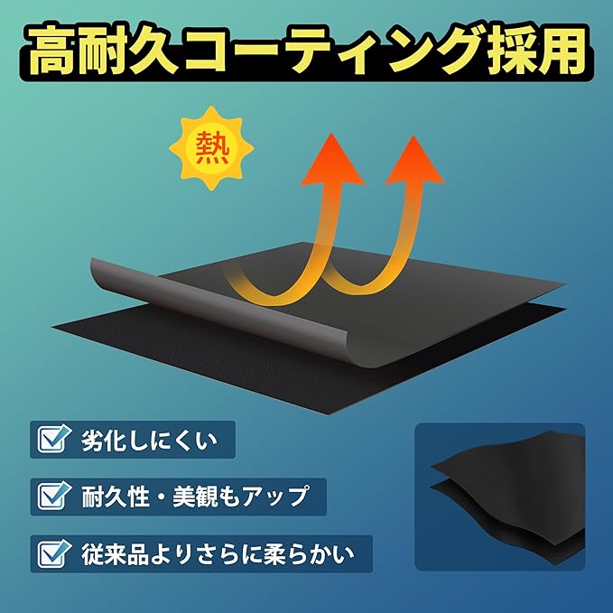 ★【劣化しにくい!高耐久コーティング採用】 表面には高耐久コーティングを施しており、長時間の日差しや熱にも強く、色あせやひび割れを防止。繰り返しの取り付け・取り外しでも傷みにくく、長く美しい状態をキープできます。 さらに、汚れが付きにくい加工で、サッと拭くだけのお手入れでOK。