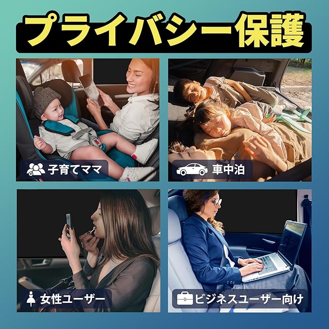 ★【プライバシー保護】 外からの視線をしっかり遮断し、車内のプライバシーを守るマグネット式カーテンです。遮光性の高い素材を使用し、昼夜を問わず車内が見えにくくなる設計。車中泊や休憩、授乳・おむつ替え、着替えなど、あらゆるシーンで安心してお使いいただけます。