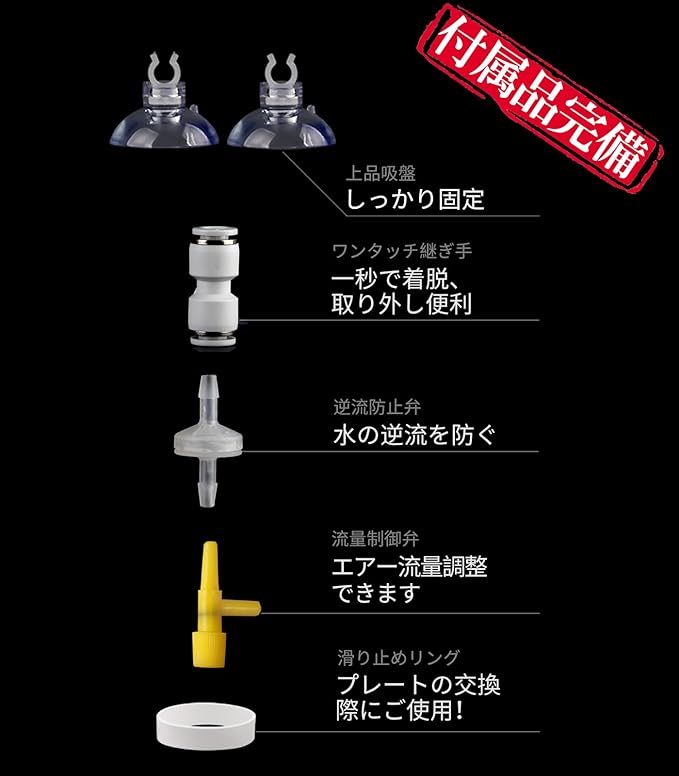 【製品説明】小さくて美しいです。普通ストーンより気泡がもっと細かくて、もっと静かです。 プレートが交換できます。逆流防止弁と流量調整弁がおまけで付いています。