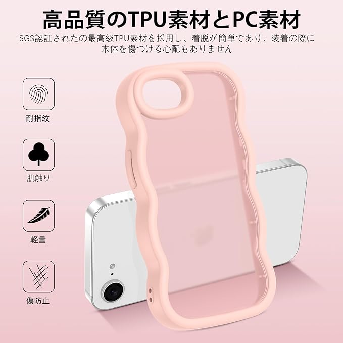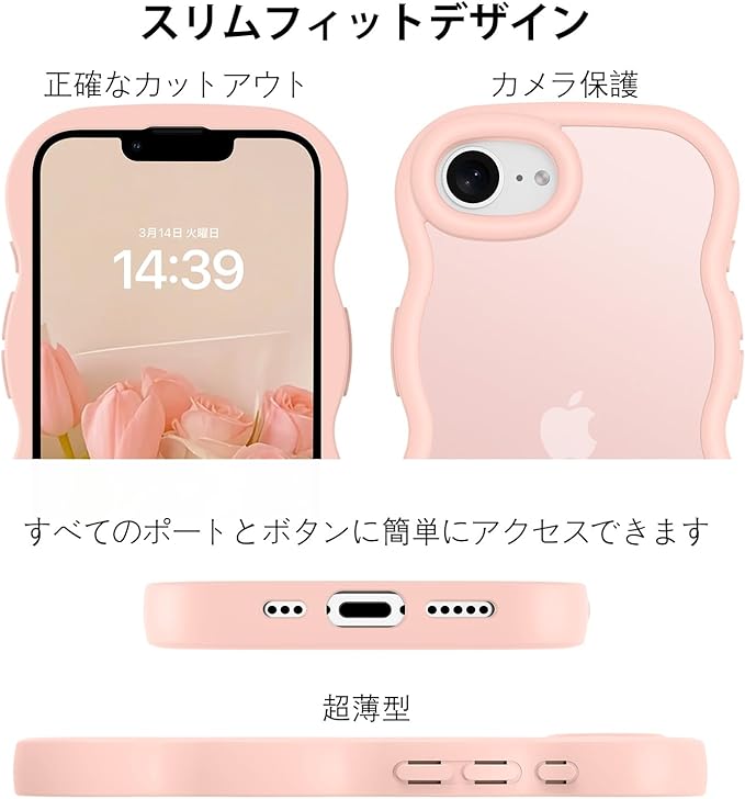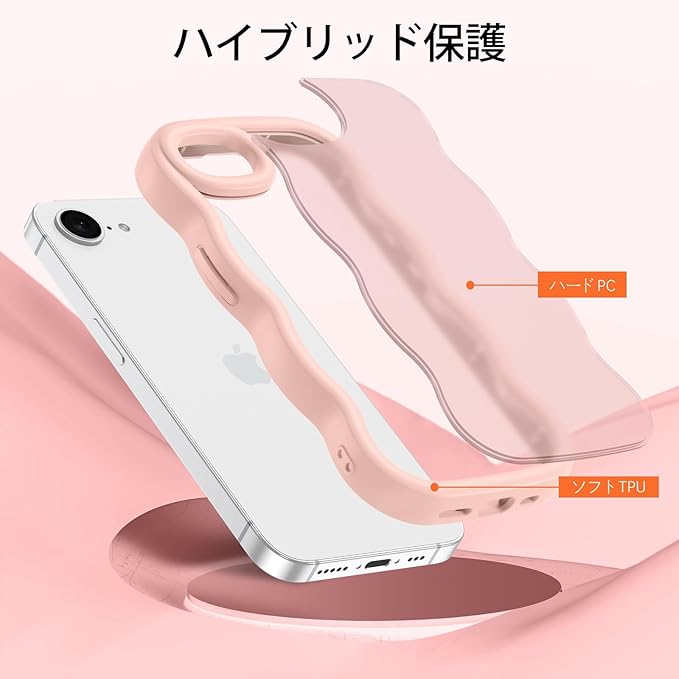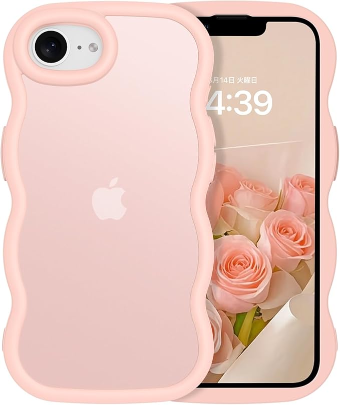 DOMAVER iPhone 16e 用ケース ピンク 波型 うねうね かわいい 韓国 人気 可愛い ソフト 超軽量 耐衝撃 指紋防止 ストラップホール付き 半透明 おしゃれ ウェーブ カバー iPhone16e iPhone SE4 スマホケース 6.1インチ ピンク | oioioichan