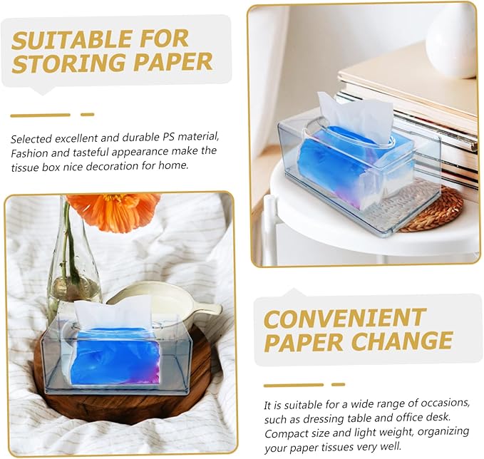 透明なティッシュコンテナ - 化粧台やオフィスデスクなど、幅広い場面に適しています透明なティッシュオーガナイザー