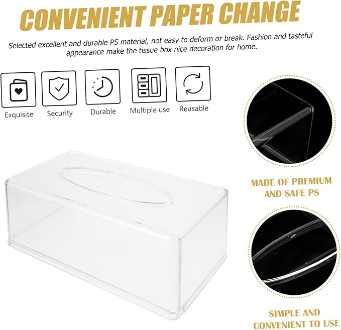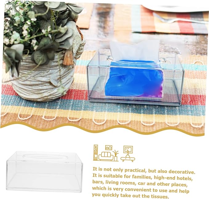 長方形のティッシュコンテナ - ご自宅、リビングルーム、寝室、オフィス、旅行、アウトドア、車、お店などの装飾、透明なティッシュコンテナ