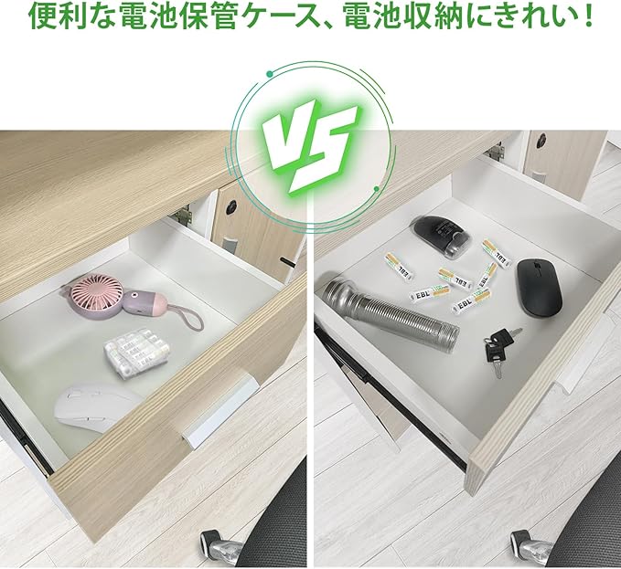 電池ケース付き:電池収納ケース付き、電池ケース内に1本1本パティーションがあるから、電池を使用されない時、きれいに収納できます。