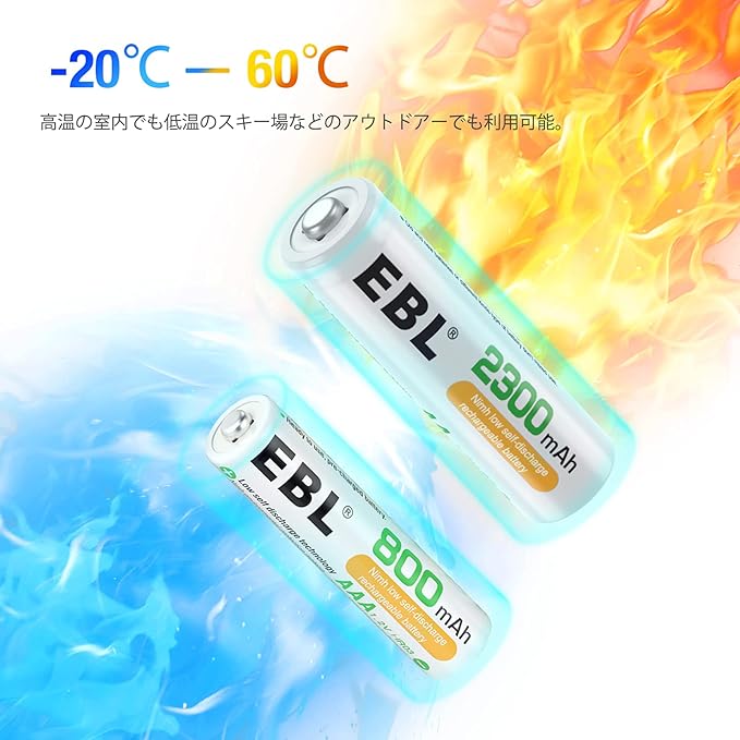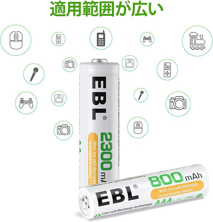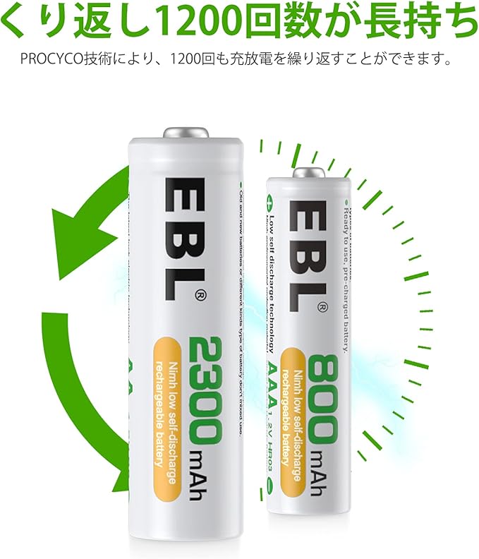 EBLの.&ご注意点:すべてのEBL製品は1年間制限ある.付いています。※使用する前に極性に正しく挿入されているかどうかご確認ください。※充電池は涼しく乾燥した場所に保存してください。※長時間アイドル状態になっていた場合は、 少なくとも3ヶ月に1回は充放電してください。