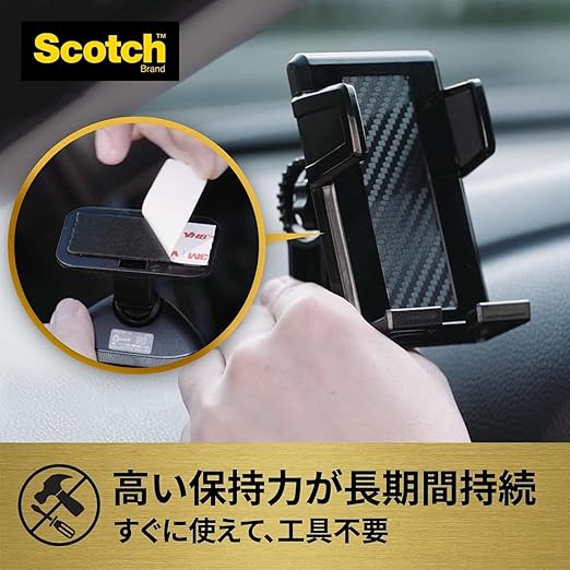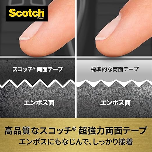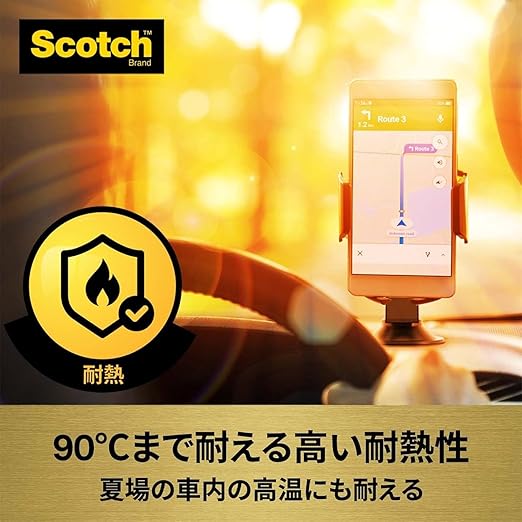 接着できない素材と場所:シリコーンやフッ素樹脂加工面・表面や塗装がはがれやすい面・凹凸の激しい面・特殊加工したダッシュボード面・段差がある場所・曲面がきつい場所・常に高温になる場所・湿気の多い場所
