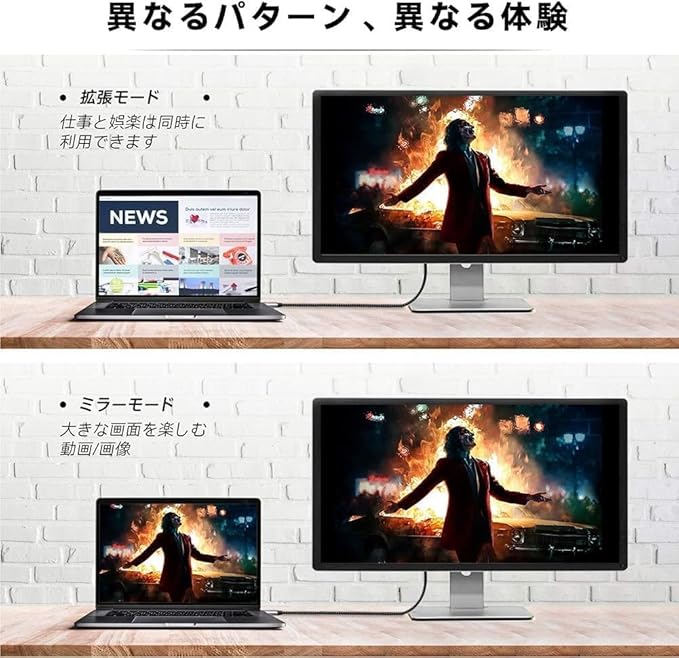 【設定不要】ソフトウェア、ドライバ要らず、複雑なインストールなし、簡単接続次第手軽にご利用できます。良い質感持ち、USB-C HDMI端子外装が軽量で、耐久性のある複合材料で作られています。頑丈なナイロン織りメッシュに包まれ、ケーブルが保護されています。