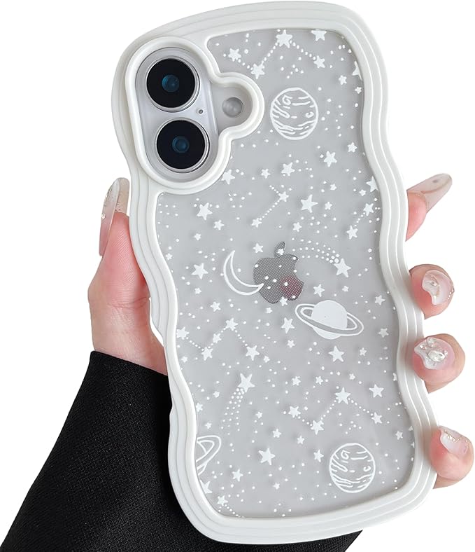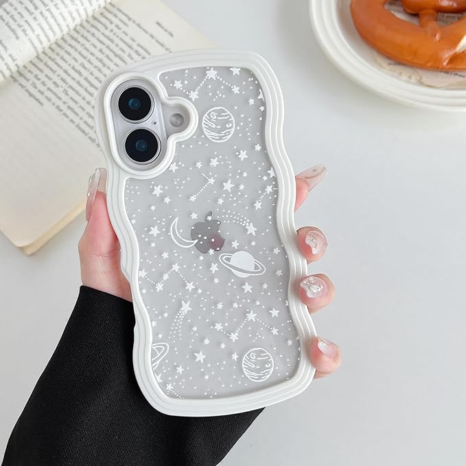 ZTOFERA iPhone 16 用波状のケース おしゃれ クリアケース 人気 韓国 女子 アイフォン 16 ウェーブケース かわいい プラネット スカイ 星 月 宇宙 スマートケース 軽量 耐衝撃 ハード PC ソフト TPU バンパー ケース 画面レンズ保護 透明 携帯カバー (クリーム) | oioioichan