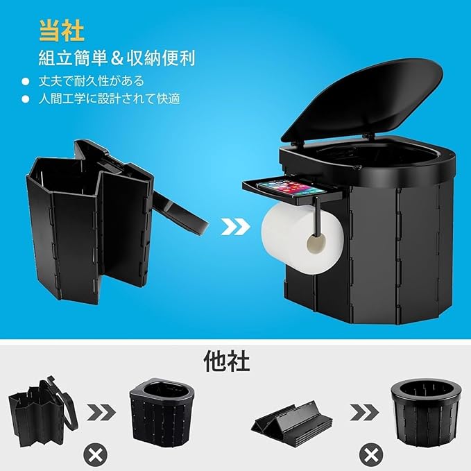 【スマホも置ける・紙も取りやすい】災害用簡易トイレ 非常用トイレ ポータブルトイレ 折りたたみ式 ペーパーホルダー付き コンパクトサイズ 耐荷重200KG PUクッション 厚みがあり傷つきにくく汚れにくい お手入れ簡単災害用ポータブルトイレ 軽量 洗えるキャンピングカーバン用トイレ 屋外車載用防災用品 | oioioichan
