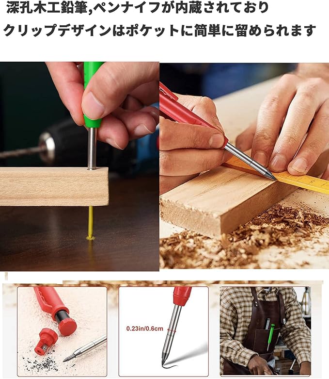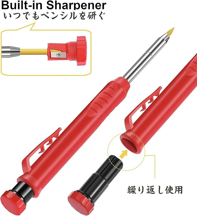 【建設用鉛筆詰め替え】穴あけ工具标记笔ポータブル木工鉛筆.シャープペンシル:大工さんの鉛筆は指から落ちず、繰り返しの跡は痛みを減らす、ペンホルダーの設計はポケットに簡単に接続でき、使いやすく、紛失しにくく、効率を高め、建築や 大工の友人や家族へのプレゼントとしても、効率的に作業できます