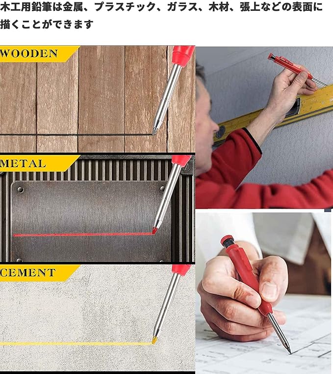 【効果的な科学的デザイン】:ディープホールメーカー: 延長されたニードルノーズチップで設計された深い穴の大工用鉛筆は、長さ45 mmで、他の大工のマーカーが行わない手の届きにくい場所に届きます。穴や狭い場所でのマーキングに適しています。 木工用鉛筆ペンの詰め替えは簡単に交換できます