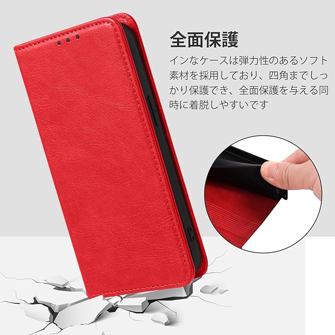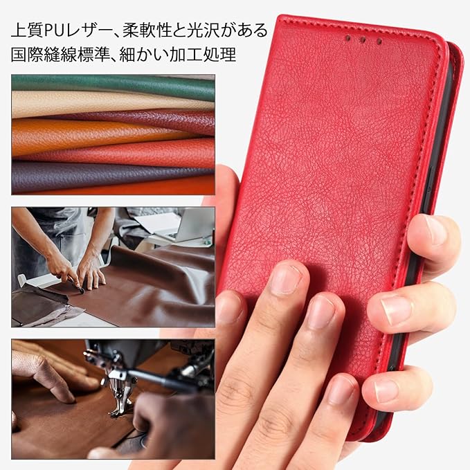 [優れた品質]: 本製品の外皮には耐熱性、耐摩耗性に優れた合成皮革を使用しています。表面の生地は柔らかい質感で持ち心地も抜群です。手に汗をかいても滑りにくく、ケースに匂いもつきません。インナーシェルは柔らかく柔軟な素材を採用しており、角までしっかり保護できる実用性の高い手帳型ケースです。