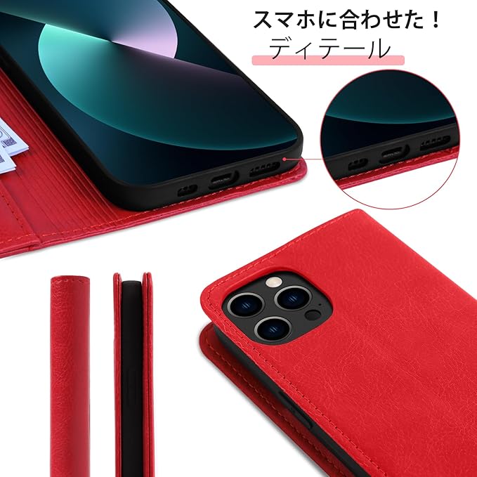 Kedic for iPhone16Promax ケース 手帳型 アイホン16pro max ケース シンプル ビジネス風 マグネット内蔵 iPhone16 Pro Max カバー いphone16promax 手帳型ケース iPhone 16 Pro Max ケース 柔軟性あるTPUケース ストラップホール付き 財布型 携帯ケース iPhone16プロマックス スマホケース 携帯カバー レッド | oioioichan