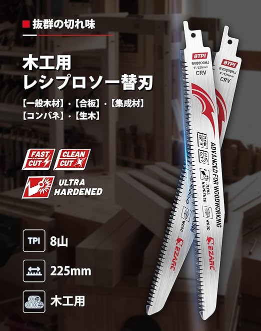 【適用機種】Bosch、Milwaukee、Black&Decker、Hitachi、Makita、Metabo、Dewalt、Porter Cable、Skil、Rockwellなどのレシプロソーに適用。