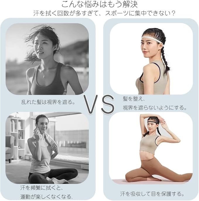 気軽に運動を楽しむ:スポーツやトレーニング、サッカー、、ジム、ホッケー、テニス、ヨガ、ゴルフ、ランニング、髪を結ぶなど、あらゆるレジャーに最適。男女兼用ヘアバンド スポーツ。 複数個同時に重ね付けも可能。