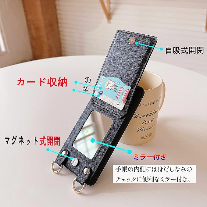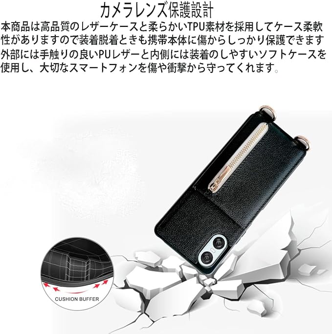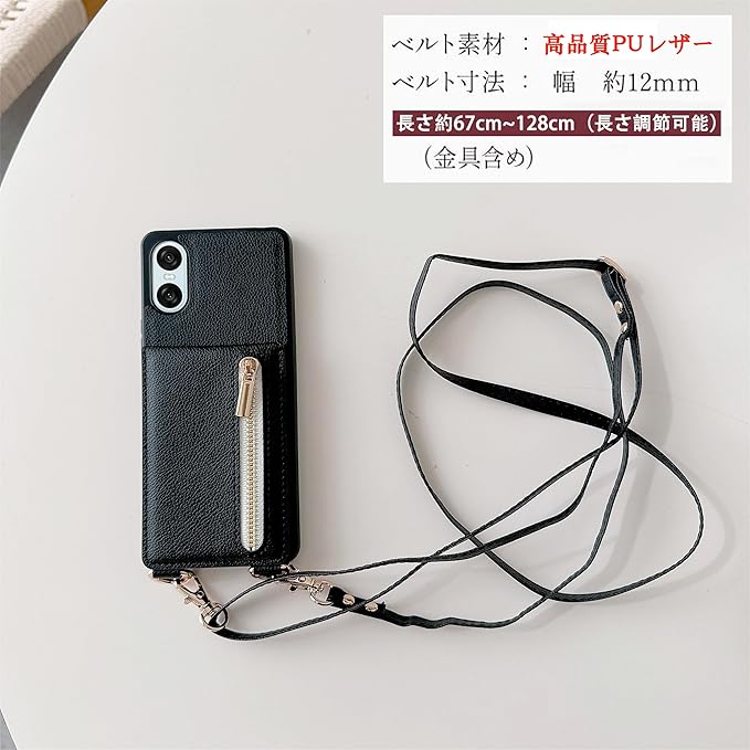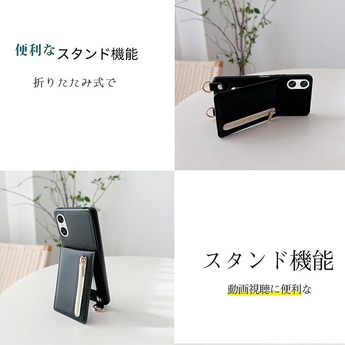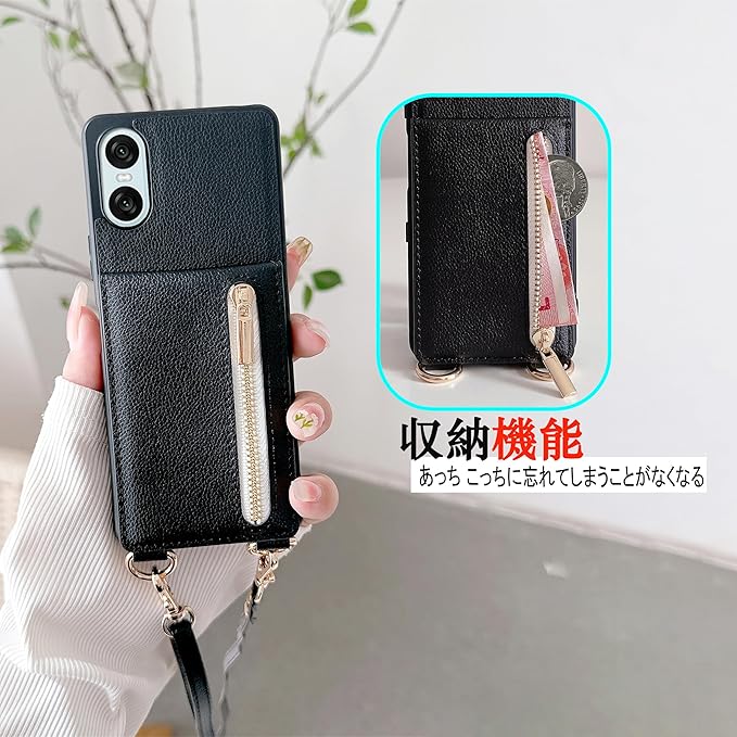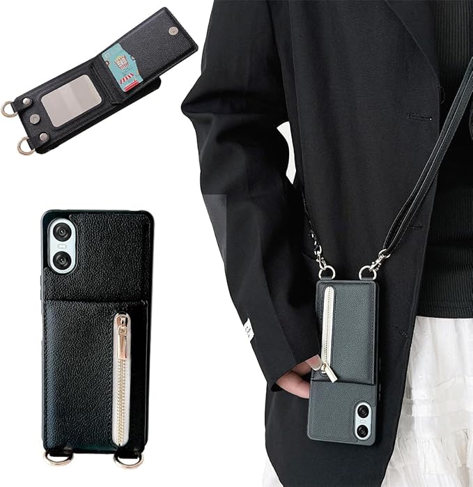 Xperia 10 VI ケース 高質レザー Xperia 10 VI カバー 肩掛け 首かけ 斜めがけ SO-52C ケース ショルダー エクスペリア 10 IV ケース ミラーケース SOG07 ケース 便利 カードポケット スタンド機能 落ち着いた色 調節可能 軽量 多機能 縦置き ICカード収納 財布型 耐衝撃 携帯 鏡付き ケース ブラック | oioioichan