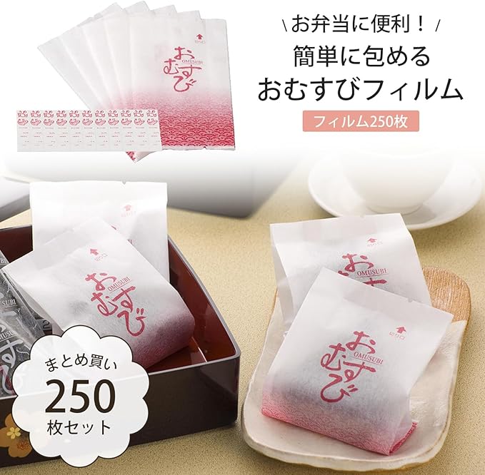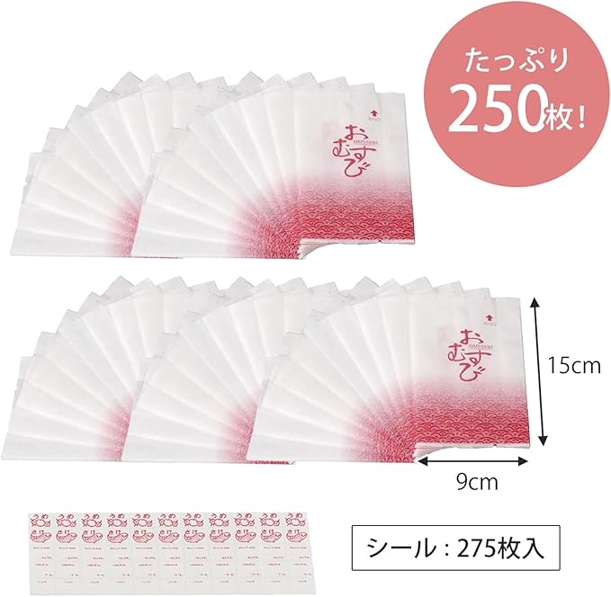下村企販 おにぎりフィルム 直巻おむすびパック 和風波 250枚入り 【日本製】 電子レンジ対応 簡単に包める 水分をほどよく吸収 切り口付き シール付き まとめ買い セット お弁当 アウトドア 行楽 46731 | oioioichan