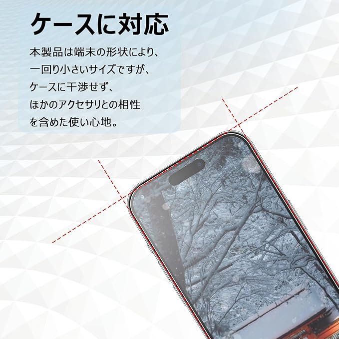 【対応機種】Xiaomi Redmi 12 5G ガラスフィルム 。 スマホケース装着スペースを確保するために曲面の縁にスペースを残すデザインとなり、あらゆるフォンケースに干渉なくぴったりです。