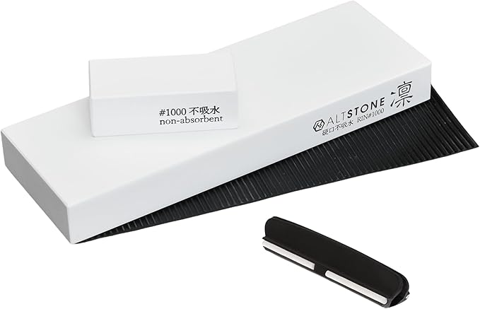 ALTSTONE 砥石 「 凜 RIN 不吸水ver. 」【硬口で緻密に研ぐ】 中砥石 1000番 研ぎ石 コンパクトサイズ セラミック [ 名倉砥石 すべり止めマット 角度補助具 付き ] 包丁 研ぎ 日本製 (#1000不吸水、補助具 付き) | oioioichan