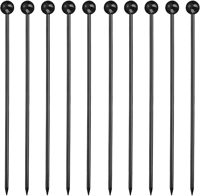 CVAAYIF(りな) フルーツピン ステンレス カクテルピン 10本セット ステンレス鋼のフルーツスティック オードブルピン 玉付 ステンレス鋼のカクテルスティックカクテルピックバーツール 再利用可能 (ブラック) | oioioichan