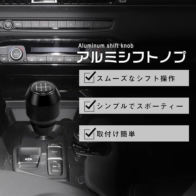 スタイルのアップグレード: アルミの質感を放つシフトノブは、シンプルでスポーティーなデザインで、車内の雰囲気を一新し、魅力的な車内空間を演出します。