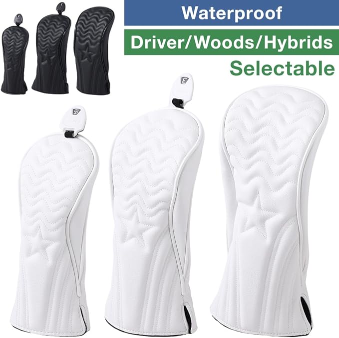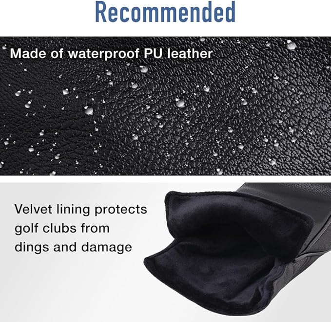 丈夫なデザイン:高品質のPUレザーで作られたこのゴルフクラブヘッドカバーは防水性があり、何回も長持ちします。