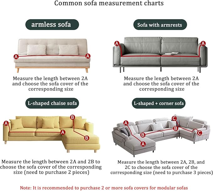 ♥ オプションのサイズ: 4つのサイズのソファカバーを提供しており、さまざまなソファのサイズに応じて適切なソファカバーをお選びいただけます: シングルソファ (35-55インチ)、ダブルソファ (57-73インチ)、3人掛けソファ (75-91インチ) 、4人掛けソファ(93~118インチ)、枕カバー(18 18インチ)。スリップカバーを購入する前に、ソファの長さ(肘掛けを含む)を測ってください。