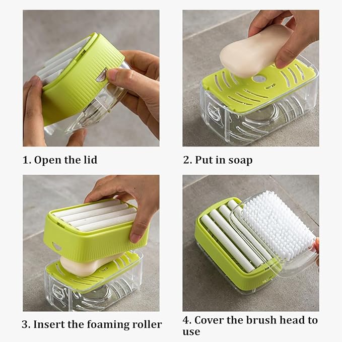 karonpeln ソープボックス ローラーソープディッシュ シャボン玉ボックス 多機能 せっけん箱 石鹸発泡ケース ローラーソー式 ランドリーブラシ付き 水切り 石鹸ボックス 軽量 耐久性 便利 キッチン 浴室 トイレ用 (グリーン) | oioioichan