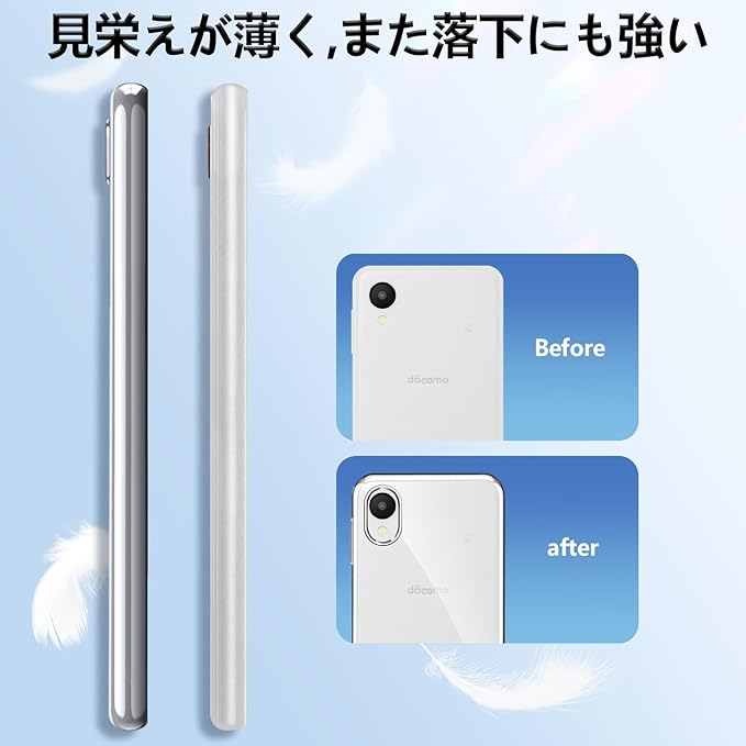 【オシャレ・シンプル】クリアな背面高い透明感を持ち、ケース四隅とボタン部分メッキ加工を応用し、シンプルで高級感溢れて、トレンディなメッキデザインは精緻されたライフスタイルを示します。超軽量薄型、A23本体とピッタリ密着しており、長く持っても手が疲れる感じもありません。