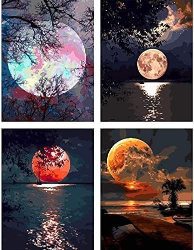 4pcs5D ダイヤモンドペインティングセット、モザイク制作、クリスタルフルダイヤモンドクロスステッチクラフト、完璧な家の壁の装飾 30X40cm (美しい月のシーンダイヤモンドペインティング) | oioioichan