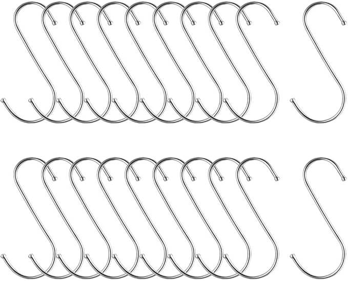 MUL-目的:Sフックの優れた点の1つは、家の特定のエリアに限定されないことです。屋内と屋外の両方で、さまざまな用途に使用できます。キッチンで鍋、鍋、調理器具、さらにはコーヒーマグを吊るすために使用します。タオルや洋服を掛けるためのバスルーム。ツールを整理するためのガレージで。居間や庭にぶら下がっている植物や装飾品。またはあなたの車にバッグをぶら下げます。