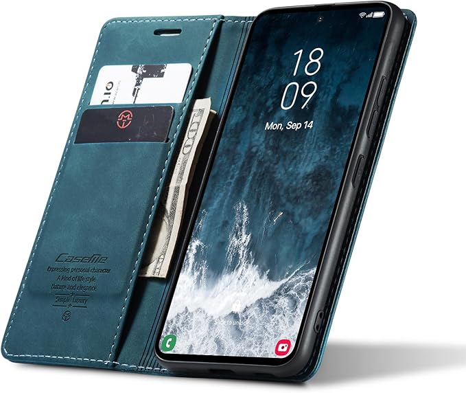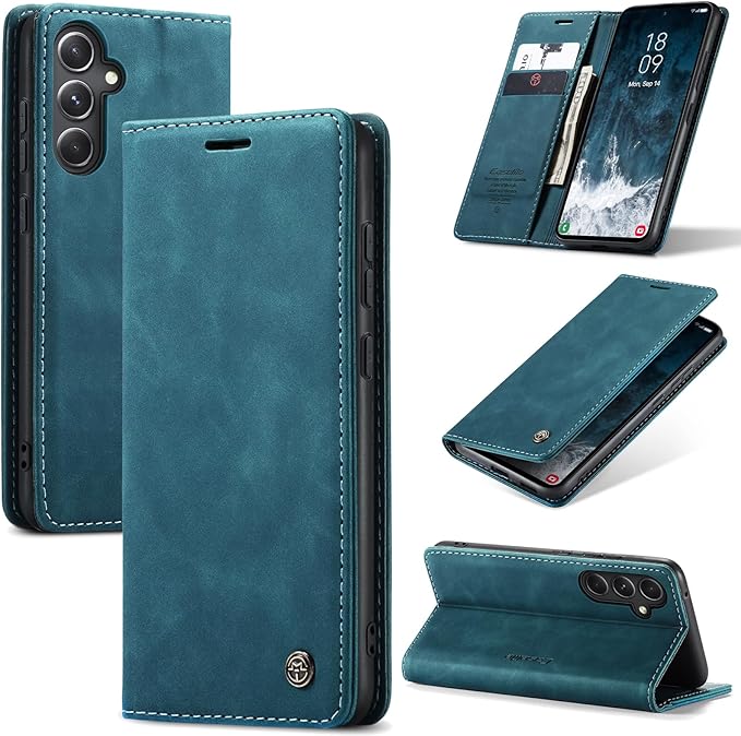 Galaxy S23 FE用ケース手帳型ギャラクシーS23 FE 用カバーレトロ 100% 手作りSCG24 用ケースおしゃれ メンズ レディース マグネット開閉式 耐摩擦 耐汚れ 指紋防止フィット感 落下防止 (ブルー, Galaxy S23 FE) | oioioichan