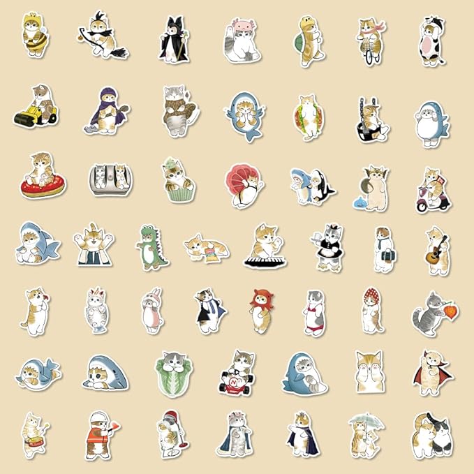 Deyimeri Forかわいいねこ ステッカー 水墨猫 シール 50枚セット 防水デカール キャット 可愛い おしゃれ アニメ 漫画 DIY ステッカー 子供 学生 自転車ステッカー 文房具 水筒 スケート 携帯ノート スーツケース シール (9) | oioioichan