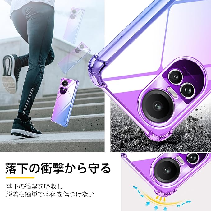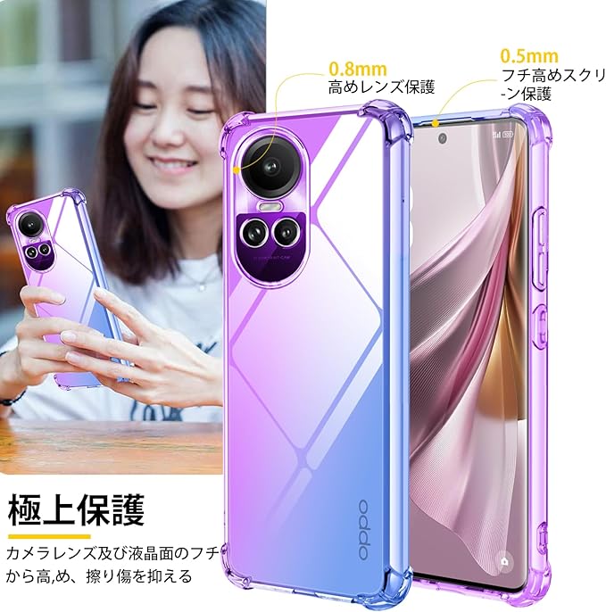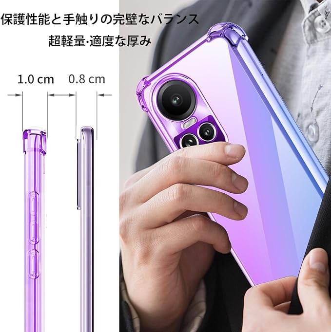 OPPO Reno10 Pro 5G ケース クリア TPU 薄型 軽量 OPPO reno 10 Pro 5G 用の カバー グラデーション色 ケース 耐衝撃 ストラップホール付き 米軍MIL規格取得 滑り止め 黄変防止 防塵 一体型 人気 携帯カバー (パープルブルー) | oioioichan