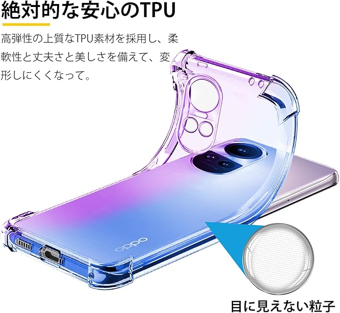 【絶対的な安心のTPU素材】スマートフォンケースでは最も使用されるソフトな材質「TPU」を使用し、端末毎に最適なサイジングを施しています。取り外しも簡単で、装着の際にOPPO Reno10 Pro 5Gを傷つける心配もありません。