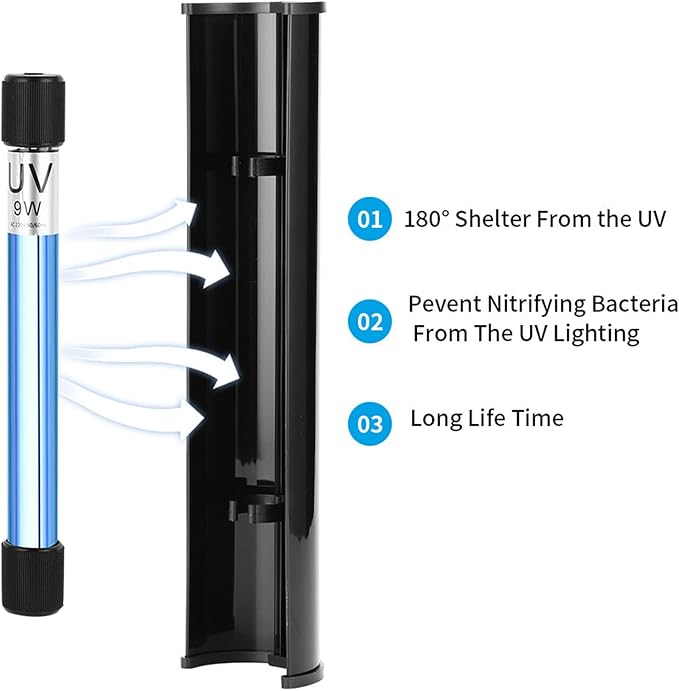 この UV ライト シェードは、水槽に最適なアクセサリーです。ガラス管固定クリップと固定クリップのスライド溝が付いています。