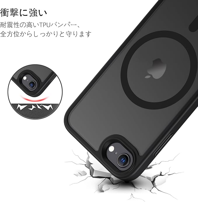 BENTOBEN iPhone SE 第3世代 用/iPhone SE2 / iPhone8 / iPhone7 ケース MagSafe対応 ワイヤレス充電 マット感 半透明 指紋防止 ストラップホール付き レンズ保護 耐衝撃 アイフォン SE3 SE2 8 7 ケース カバー ブラック | oioioichan