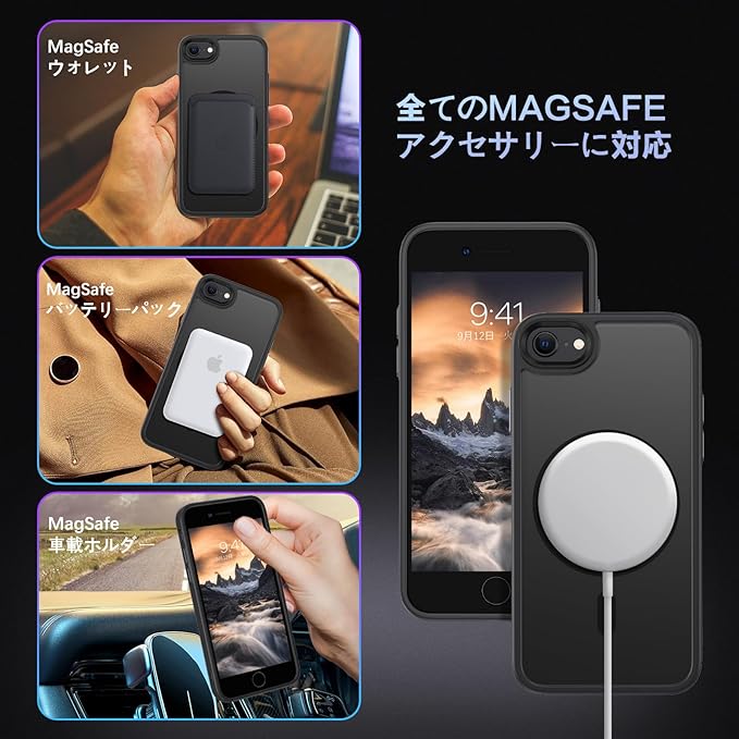 ★【MagSafe対応】iPhoneSE3/SE2/8/7ケースにマグネットを搭載し、MagSafeにも対応します。iPhoneを充電器に合わせやすくなっています、リラックスした生活に重宝する。