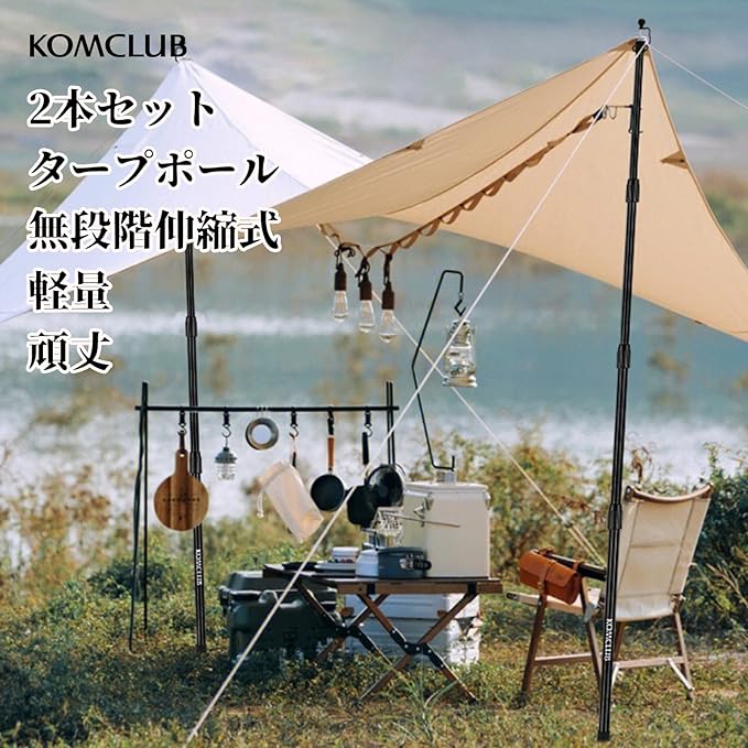 KOMCLUB タープポール テントポール 伸縮式タープポール 伸縮85cm~250cm 直径20mm~30mm 無段階調節 高さ調節 スライド式 組立不要 2本セット4本セット グラスファイバー ブラック 軽量 収納袋付き コンパクト天幕用ポール キャンプ 設営用 | oioioichan