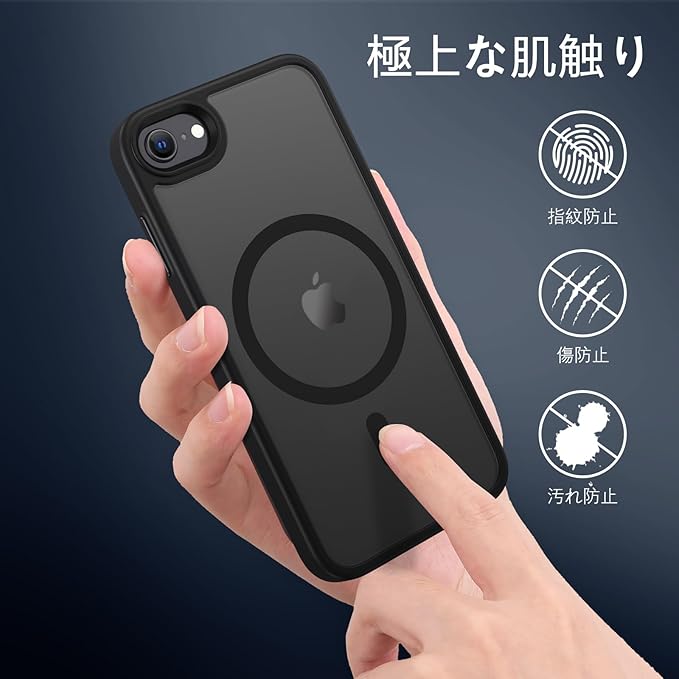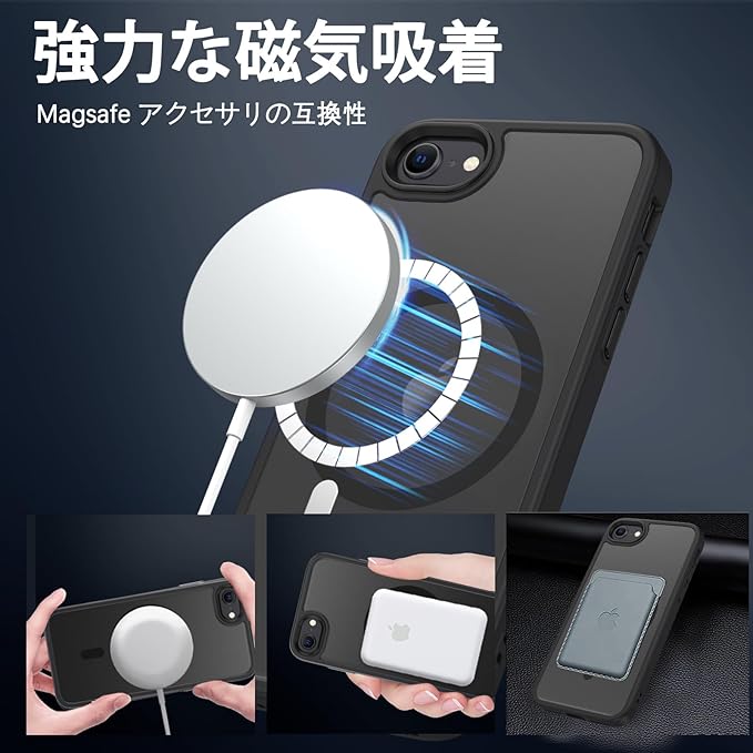 VENINGO iPhone SE 第3代 SE 第2代 iPhone8 iPhone7 用 ケース Magsafe 対応 マグネット 搭載 ワイアレス充電 米軍MIL規格 耐衝撃 指紋なし 黄変なし 全面保護 指紋防止 ストラップホール付き 半透明 マット仕上げ iPhone SE3 SE2 8 7 カバー 4.7インチ ブラック | oioioichan
