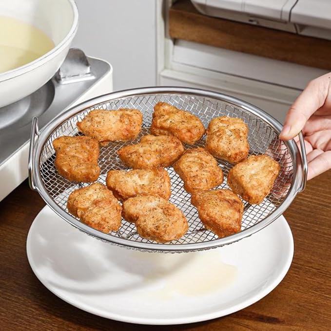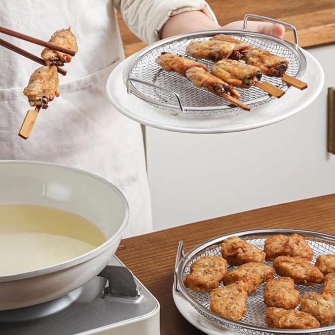 【ステンレス製フライパンバスケット】油切り、水切り、多目的、ステンレス製、に直接触れることができる。