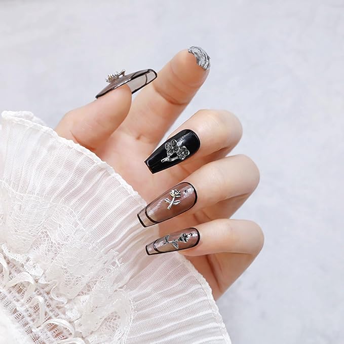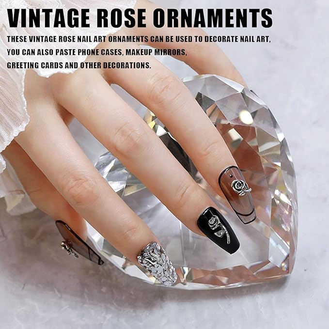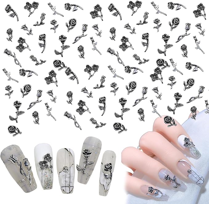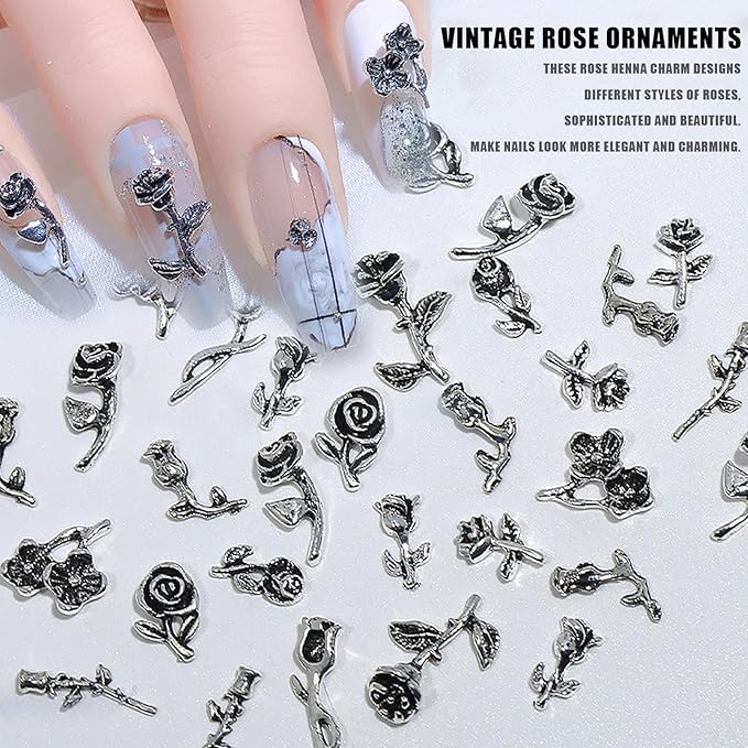 【ネイルパーツ バラ】3 Dメタルローズネイルパーツはブラックメタルでデザインされており、スタイリッシュでスタイリッシュです。自由にコーディネートできて飾りやすい。日常と祝日の雰囲気を添えます。