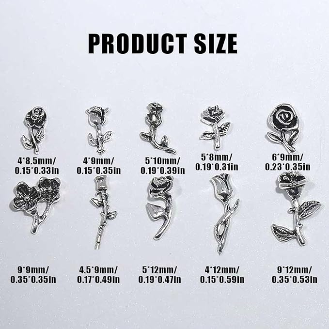 【ユニークなデザイン】ネイルパーツは異なるスタイルのバラの形にデザインされ、10種類の異なるデザインがあり、洗練されていて美しい。異なるネイルスタイルをもたらすことができます。ネイルをよりエレガントに見せてくれます。