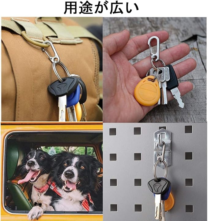 【汎用性が高い】:キーホルダー、クラフト、バックパック、釣りトング、やかん、洋服、バッグバックル、犬鎖、キャンプ、アクセサリーに使えます。
